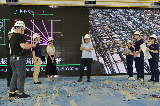 劇目《看全咨》,把現場觀眾帶回了工地施工現場。面對困難,他們從未退縮,堅持把事情做成、把事情做好,堅守“結果導向”的核心價值觀,運用扎實的專業知識解決工程難題。在劇里,他們獲得業主好評,在現實工作中,他們仍舊獲得業主夸贊。