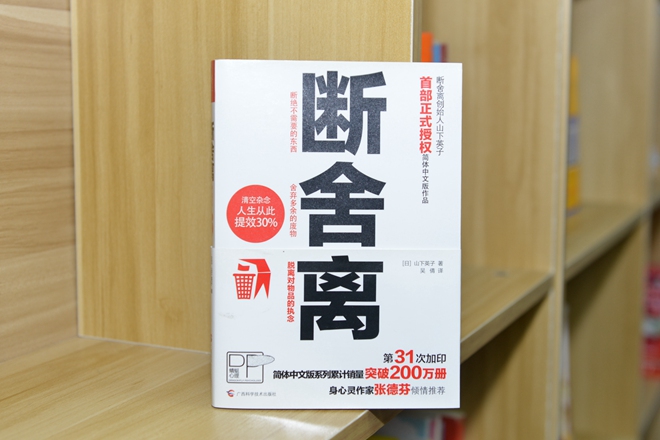 人生的種種苦惱,總混雜在我們對物品的執(zhí)著中,作者山下英子通過滲透瑜伽“斷行、舍行、離行”的人生哲學(xué),并由此獲得靈感,創(chuàng)造出了一套通過日常的家居整理改善心靈環(huán)境的“斷舍離”整理術(shù)。其中,斷=斷絕不需要的東西,舍=舍棄多余的廢物,離=脫離對物品的執(zhí)著。