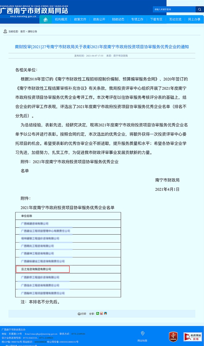云之龍咨詢集團(tuán)榮獲“2021年度南寧市政府投資項(xiàng)目協(xié)審服務(wù)優(yōu)秀企業(yè)”