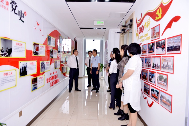 活動開始前,毛麒盛書記帶領福彩中心第一黨支部黨員參觀云之龍的辦公環境、黨建長廊、文創展區等,為大家介紹集團業務、企業文化和黨建工作。