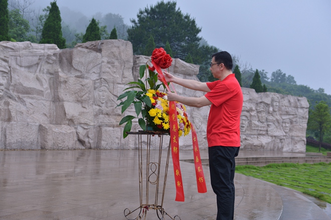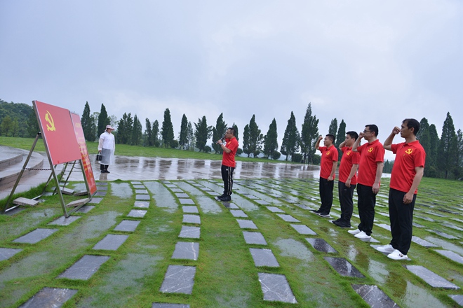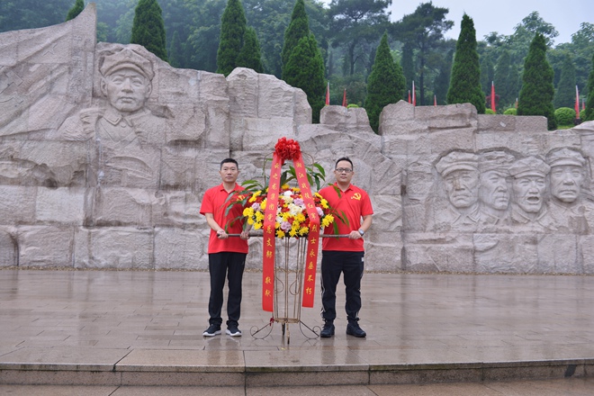 當(dāng)天,湘江戰(zhàn)役紀念園內(nèi)青松蒼翠,大雨磅礴。云之龍黨總支部副書記韓俊、組織委員蒙舒蕓、宣傳委員蔣銀亮,以及辦公室黨支部書記毛麒盛、玉林分公司黨支部書記劉柱冒雨前來紀念園。大家懷著對革命先烈無比崇敬的心情,緬懷紅軍烈士雕像,向烈士雕像敬獻花籃并默哀、三鞠躬。