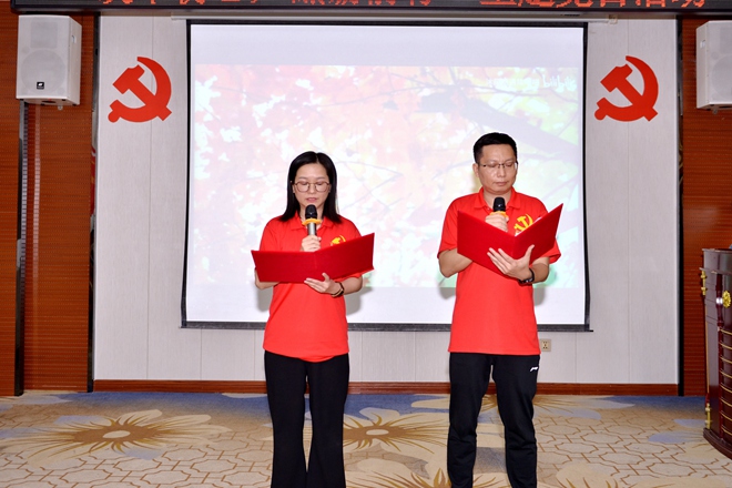 辦公室黨支部書記毛麒盛帶領(lǐng)黨員重溫入黨誓詞。一句句鏗鏘誓詞不斷激勵和鼓舞每一位黨員同志,堅定力量信念,時刻保持初心,堅守使命。