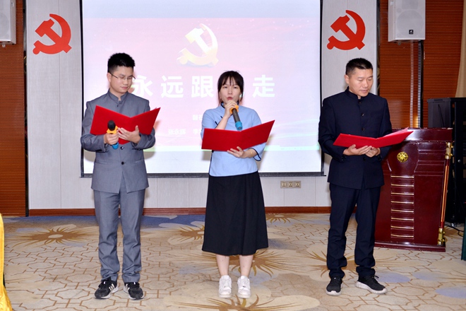 此次活動,各小組還準備了精彩絕倫的節(jié)目,詩朗誦《不忘初心》《永遠跟黨走》、情景劇《紅心向黨旗》、舞蹈《萬泉河水清又清》、手語舞《萬疆》,為大家?guī)硪惶速p心悅目的藝術(shù)之旅,更打造了一次激蕩人心的黨史課堂。通過藝術(shù)的形式,黨員們重溫百年黨史,賡續(xù)紅色血脈,汲取奮進力量。