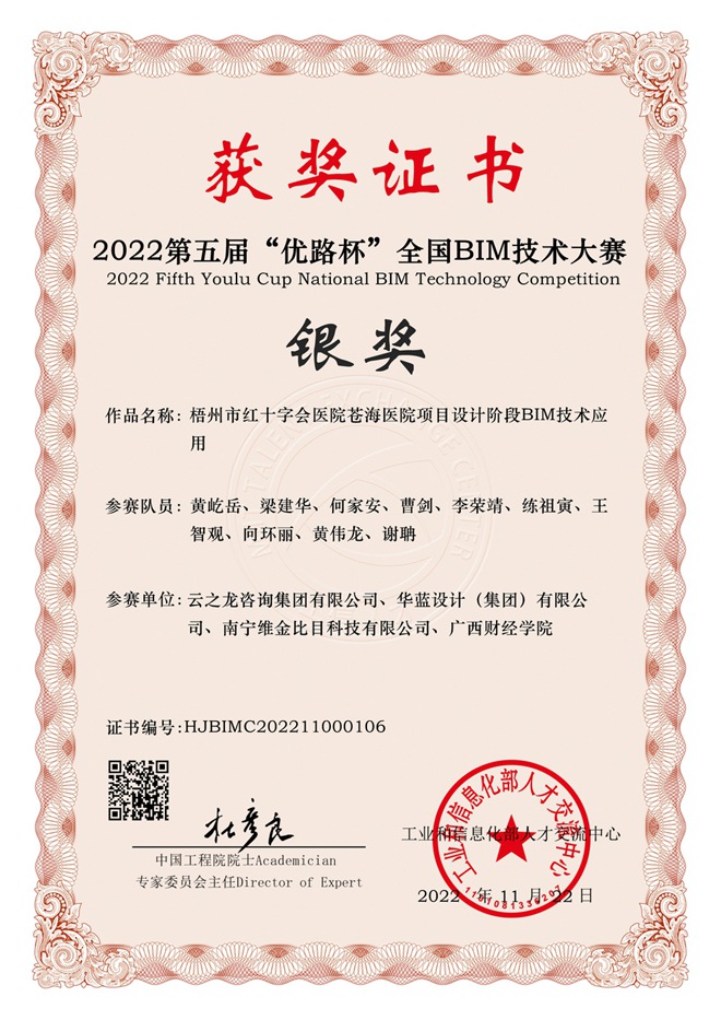 榮獲第五屆優路杯全國BIM技術大賽“銀獎”