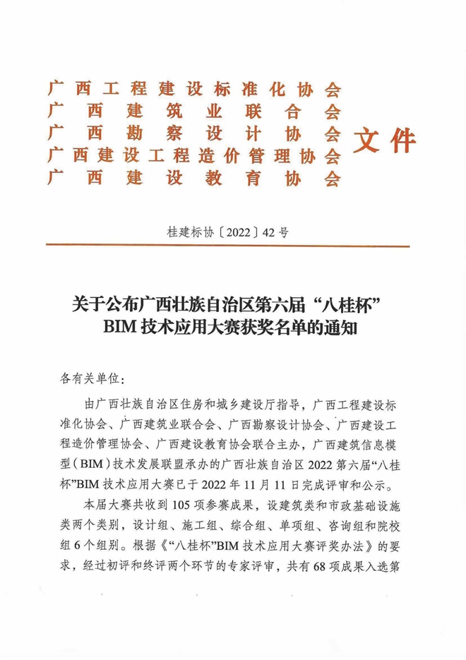 榮獲第六屆“八桂杯”BIM技術應用大賽“三等獎”