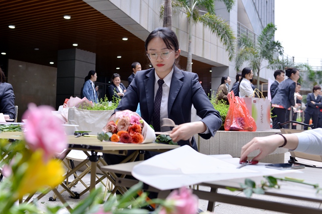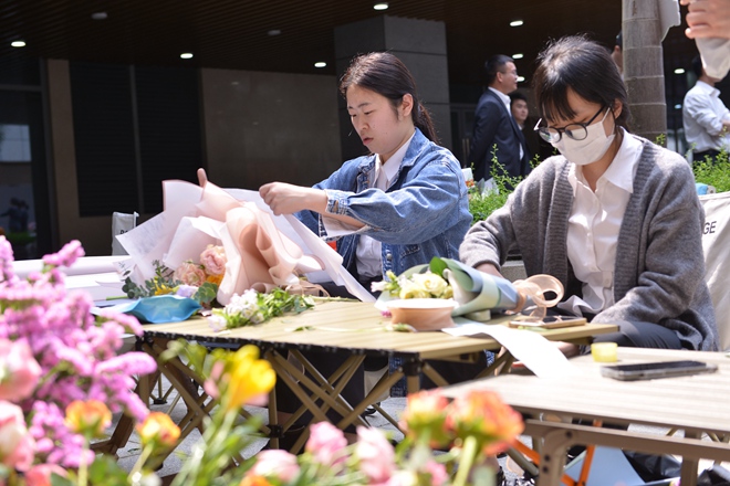 為自己包一束美麗的花,是這個節(jié)日最好的禮物。DIY花束前也圍滿了女職工,大家挑選自己喜歡的鮮花,巧手修枝剪葉,巧妙地創(chuàng)意組合,包扎出一束束錯落有致、色彩鮮艷的花束,寄托著大家對美的理解和對幸福的感悟。