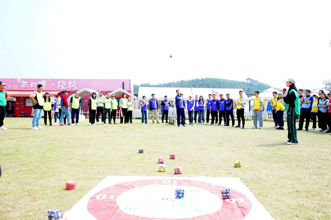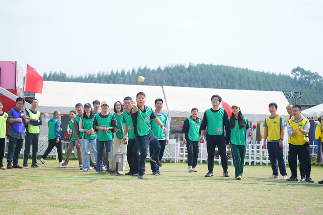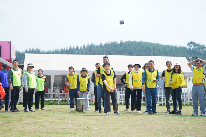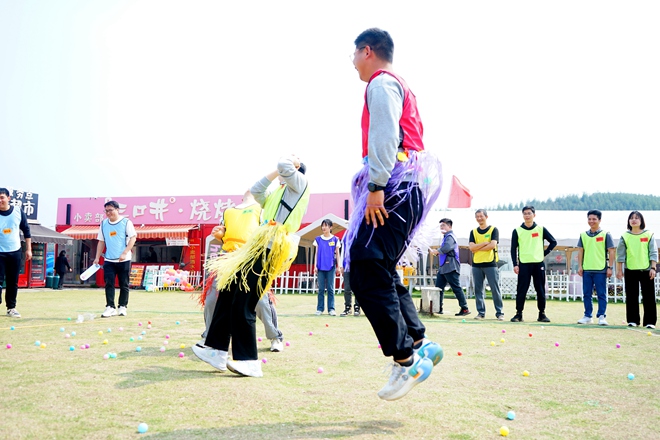 活動中,還準備了“躲貓貓、抖臀達人、蜻蜓點水、沙包擲準、坐地起身”等趣味游戲,100多人分為6個小組,團結協(xié)作,互相比拼,贏取積分,拿下勝利果實。