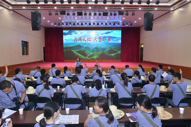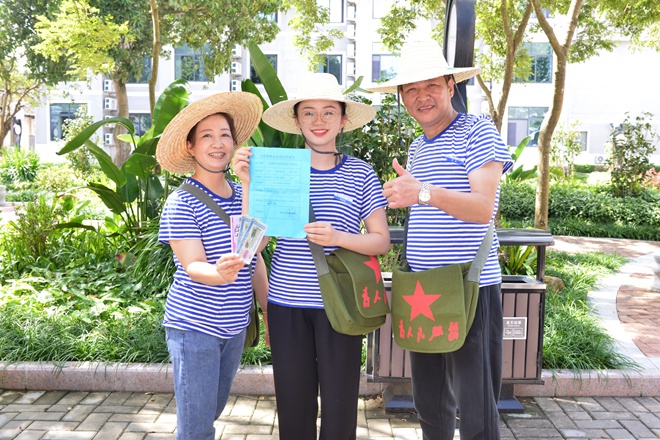 這一次的廉潔教育活動,形式新穎,“走新”又“走心”。活動當天,黨員同志來到南寧市七坡林場,沉浸式體驗廉政教育主題劇本游《叩問初心》。大家換上藍白勞動T恤,戴上草帽,挎上“為人民服務”的斜挎包,迅速“穿越”到20世紀80年代。