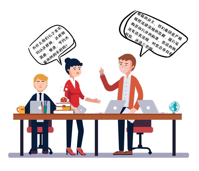 云之龍項目團隊的工作原則就是要規(guī)范執(zhí)行項目。項目經(jīng)理們總是想盡辦法為采購人解讀法律條文,道出隱藏風險。有些時候遇到采購人不太理解的情況下,他們總是不厭其煩地為其解釋,讓采購人明白規(guī)范流程就是在保護他們。